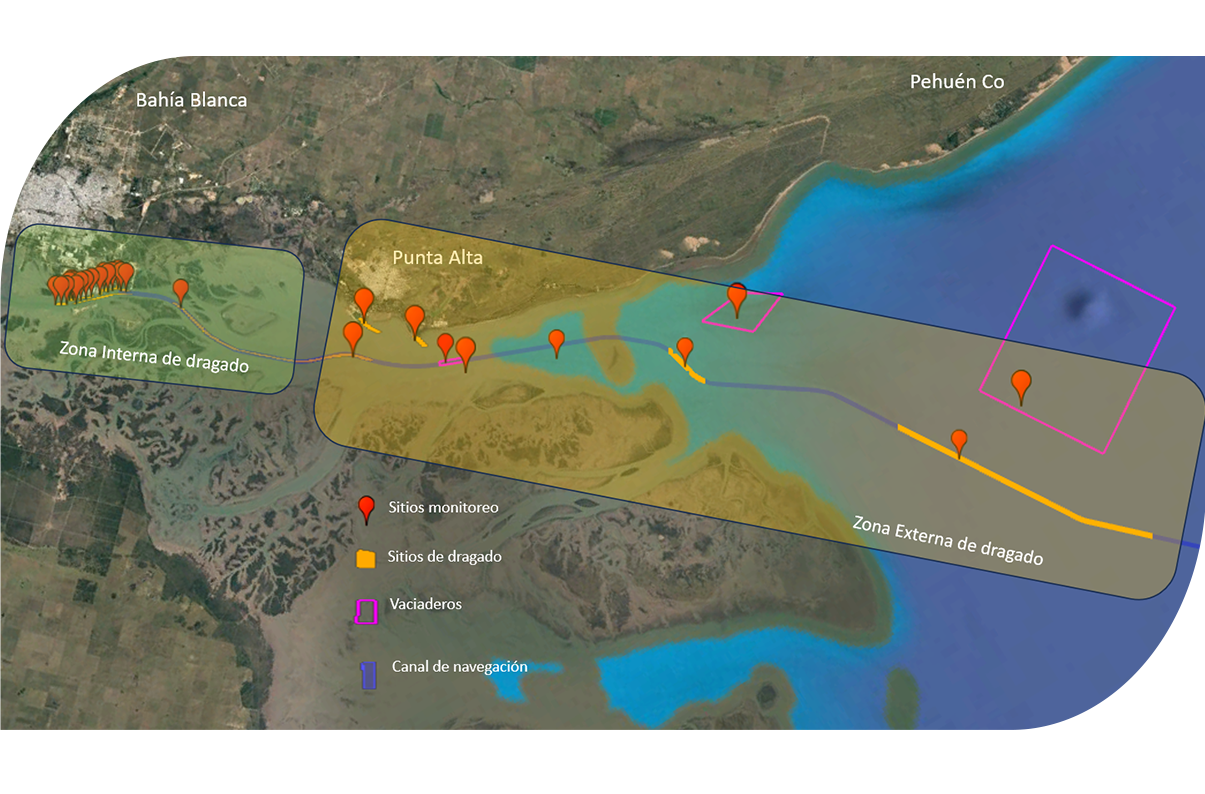 Para el monitoreo de estos sectores, se establecieron 28 puntos de muestreo, los cuales se analizan en tres campañas anuales. Estas campañas se llevan a cabo en las etapas: antes, durante y después del dragado, con el fin de evaluar el impacto potencial sobre las diferentes áreas del estuario intervenidas en la obra.